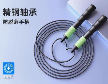 如竞赛使用,建议选择轴承结构手柄,确保高速旋转流畅。绳体材质轻量化,减少空气阻力,提升转速和稳定性。钢丝绳为竞技首选,推荐2.5mm直径包胶款,搭配轴承手柄和缓冲套,避免裸露钢丝划伤。